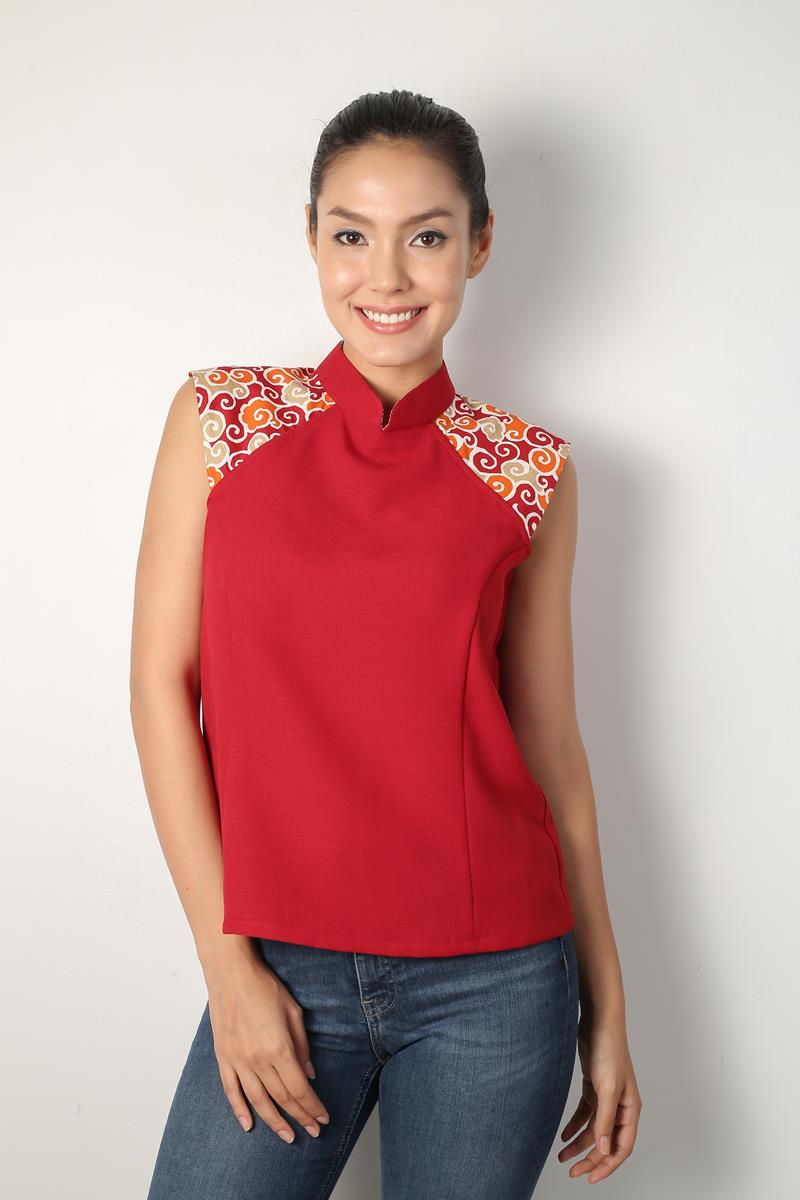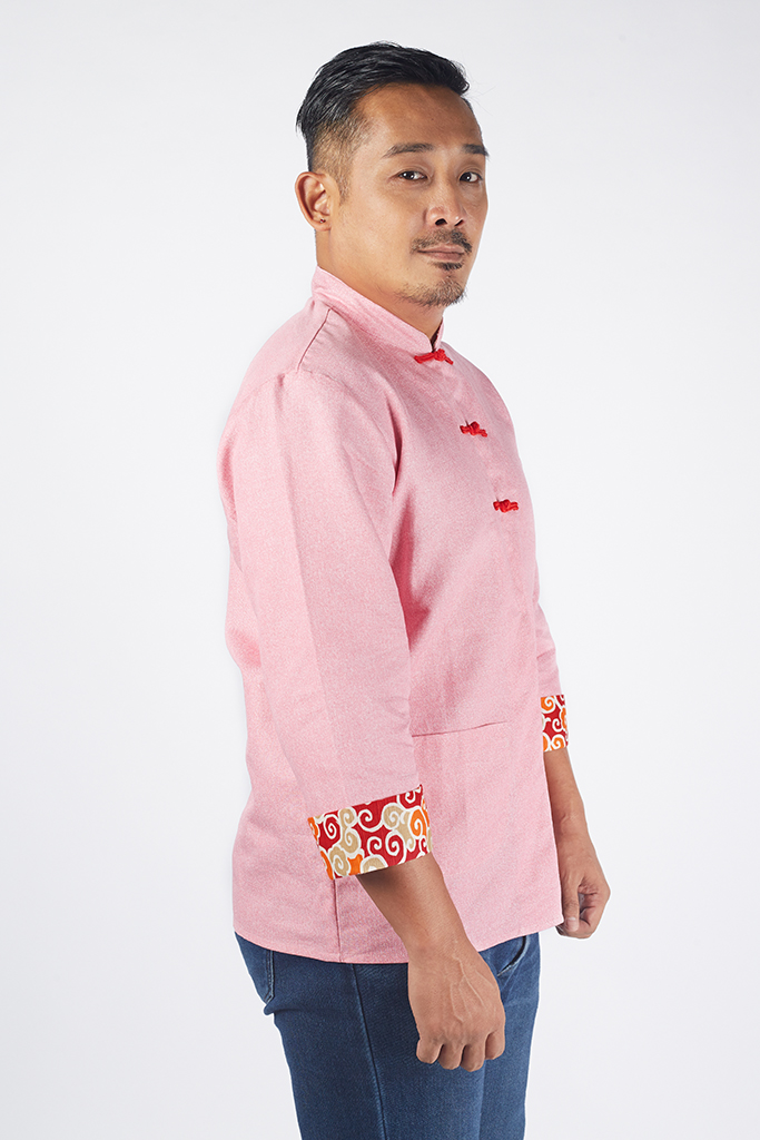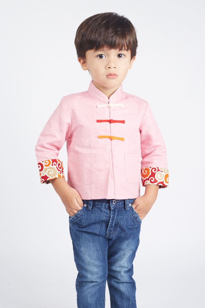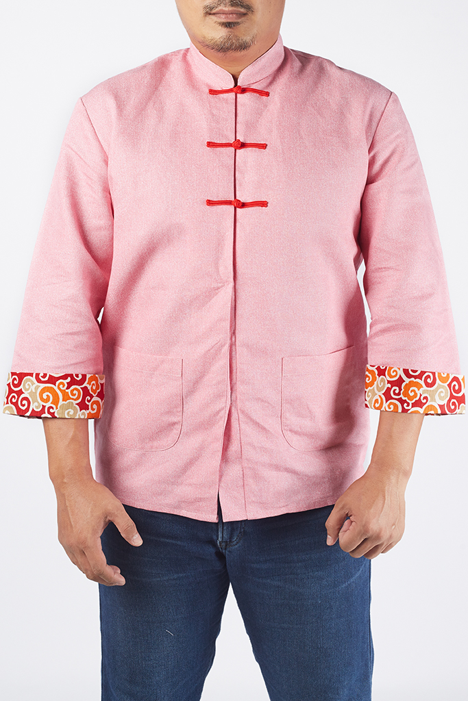 Mandarin collar, 3/4 sleeve, 2 pockets,3 Knot Chinese buttons, hidden buttons